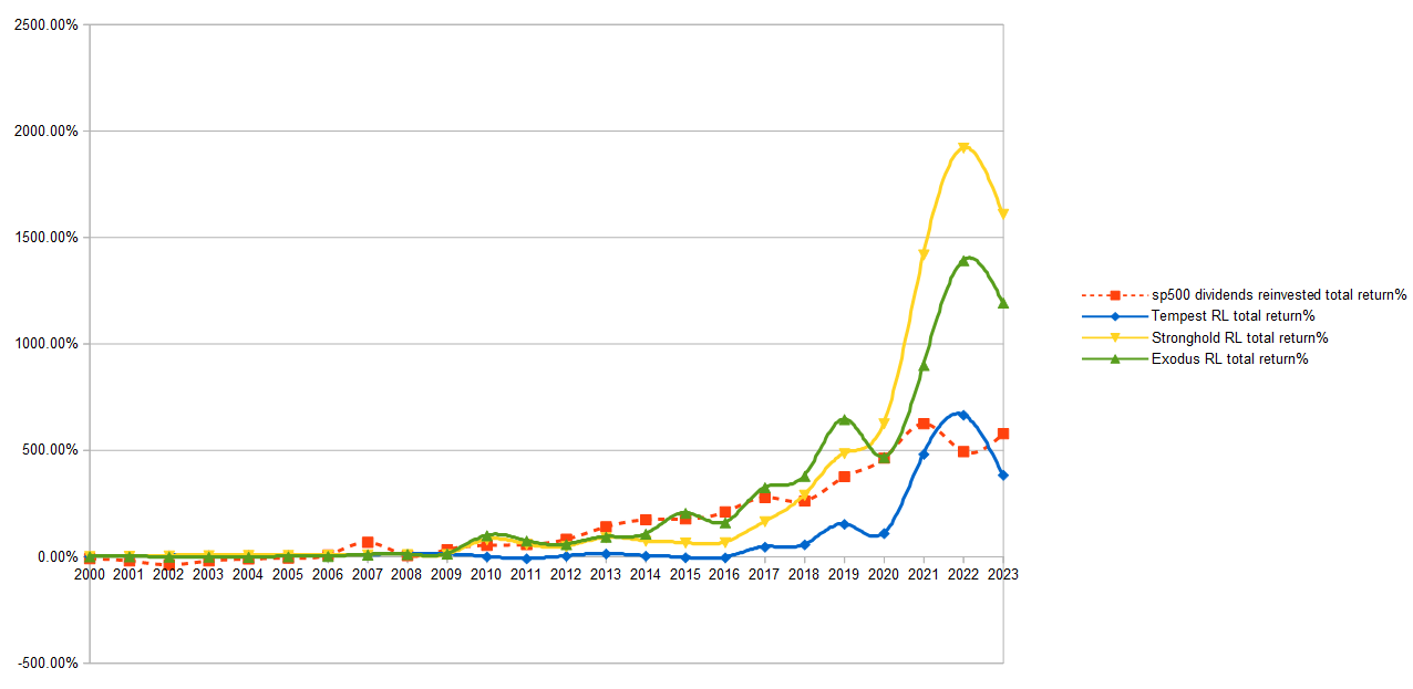 Here’s the full graph with them ranked in order. You can see some of them did not beat the Index and you can see that Wheel just did absurdly well, but part of that was starting from a very low point ( 20$) whereas the Cradle started from 40$.